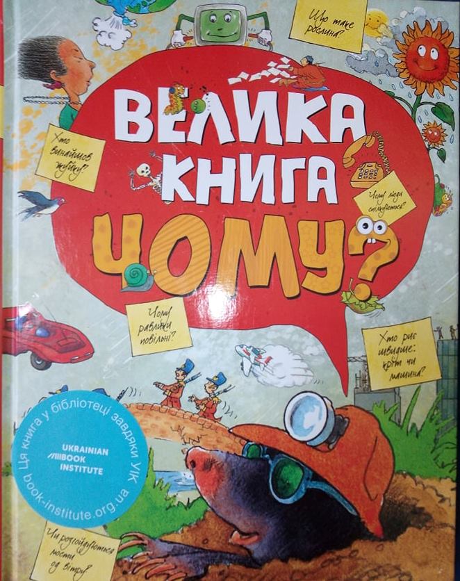 «Український інститут книги» дбає про розвиток підростаючого покоління. Саме тому він підготував для маленьких читачів багато книжок, які допоможуть маленьким розумникам пізнати наш світ і відповісти на багато питань, які виникають в них щодня. Одна з таких «Велика книга «Чому». Чудова книжка, яка неодмінно сподобається маленьким «чомучкам».