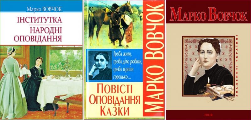 1857 року вийшла у світ перша книжка письменниці: «Марко Вовчок. Народні оповідання», надрукована в Санкт-Петербурзі в друкарні П. Куліша. До книги входило 11 творів. Одним з найкращих творів письменниці багато хто вважає повість «Інститутка» (вперше видана 1862 року). Це – соціально-побутовий психологічний твір, в якому гостро представлена проблема панської влади над простими людьми. Пиха і вередливість панів викликають обурення, чесність і доброта підневільних людей – симпатію і співчуття.