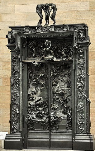 У 1880 році митець отримує замовлення від держави на оформлення порталу для Музею декоративного мистецтва у Парижі. Так виник задум центрального монументального твору скульптора «Ворота пекла», робота над яким тривала 37 років, але так і не була завершена. Однак із загального задуму народилися окремі твори: «Мислитель», «Адам», «Єва», «Поцілунок» та інші.