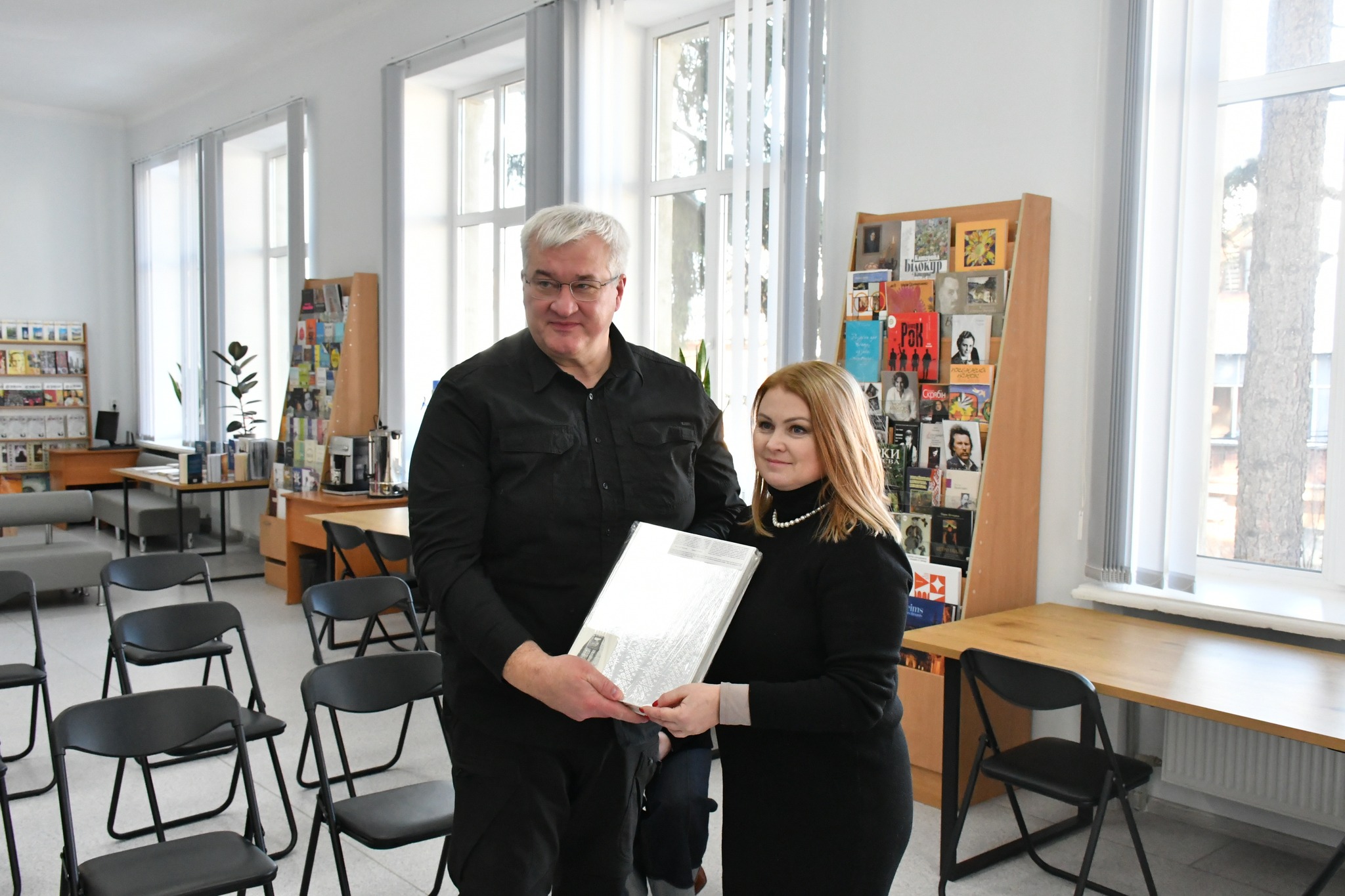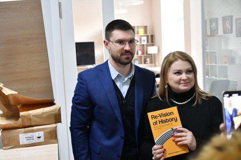 Пан міністр подарував в фонд бібліотеки цінну книгу: справжній фоліант «Україна та Українці» , а також багато примірників книги англійською мовою “Re-Vision of History” про роботу ворожої пропаганди.