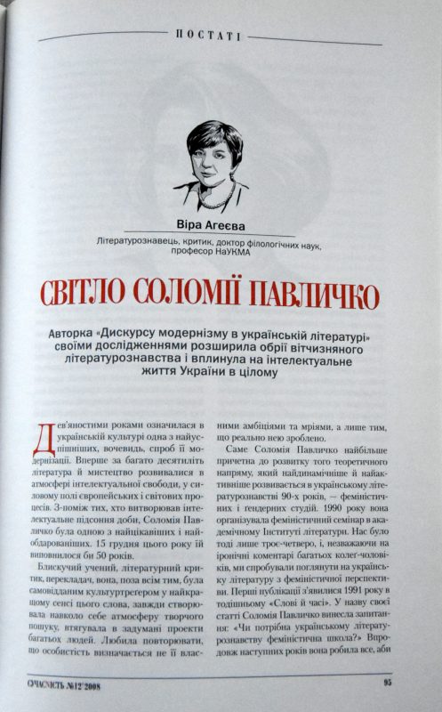 Агеєва В. Світло Соломії Павличко / Віра Агеєва // Сучасність. – 2008. – № 12. – С. 95-102.