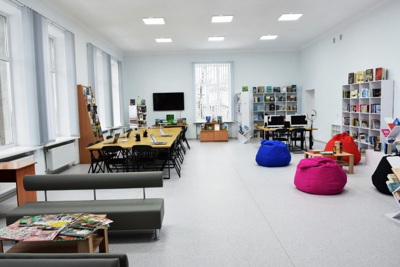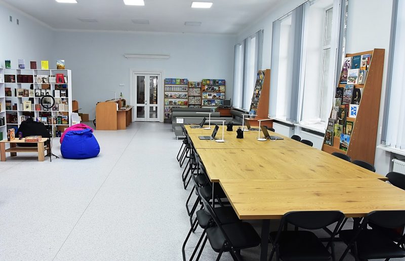 Оновлена читальна зала бібліотеки ім. М. М. Коцюбинського після капітального ремонту перетворилася на сучасний багатофункціональний простір, де можна читати, розважатися та відпочивати.