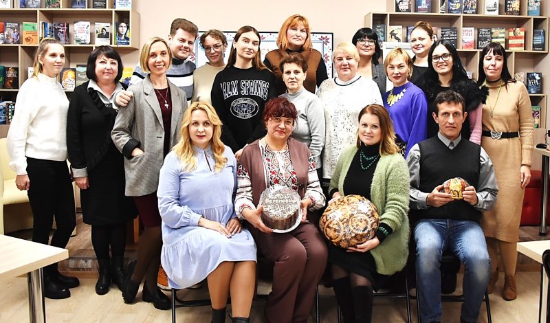 Також Ольга Заїка подарувала бібліотеці коровай а всім учасникам – здобні шишки.