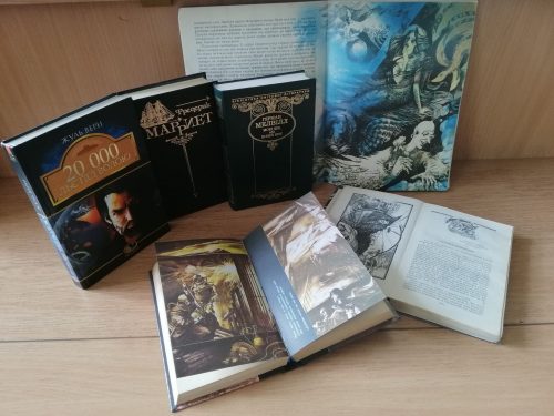 - Жуль Верн «20 000 льє під водою». Авантюрно-пригодницький роман, який уперше був опублікований на сторінках французького журналу 1869 року. Він одразу став перлиною наукової фантастики. Книга розповідає про подорож морськими надрами на дивовижному електричному підводному човні «Наутілус». Професор Ароннакс, а також його слуга Консель і гарпунер Нед Ленд, які відправилися на полювання за «невідомою твариною», потрапляють на борт єдиного в світі підводного човна і переживають протягом семи місяців дивовижні пригоди в усіх океанах земної кулі. Ім'я капітана «Наутілуса» – Немо (Ніхто), а його минуле овіяне хмарою таємниць.