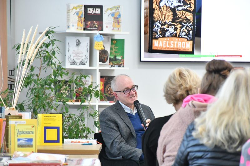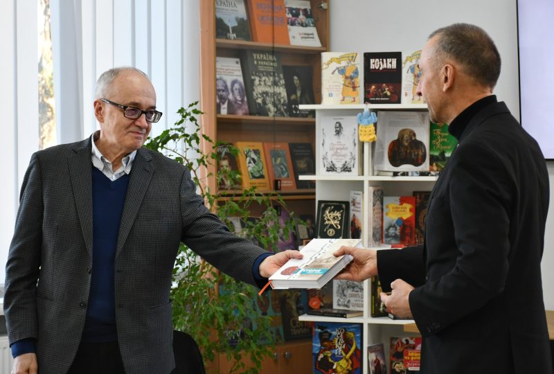 Вдячні пані Юлії Кравченко за модерацію цікавої й змістовної бесіди з паном професором, а пану Мирославу Шкандрію за подаровані примірники своєї книжки для бібліотек ЦБС.